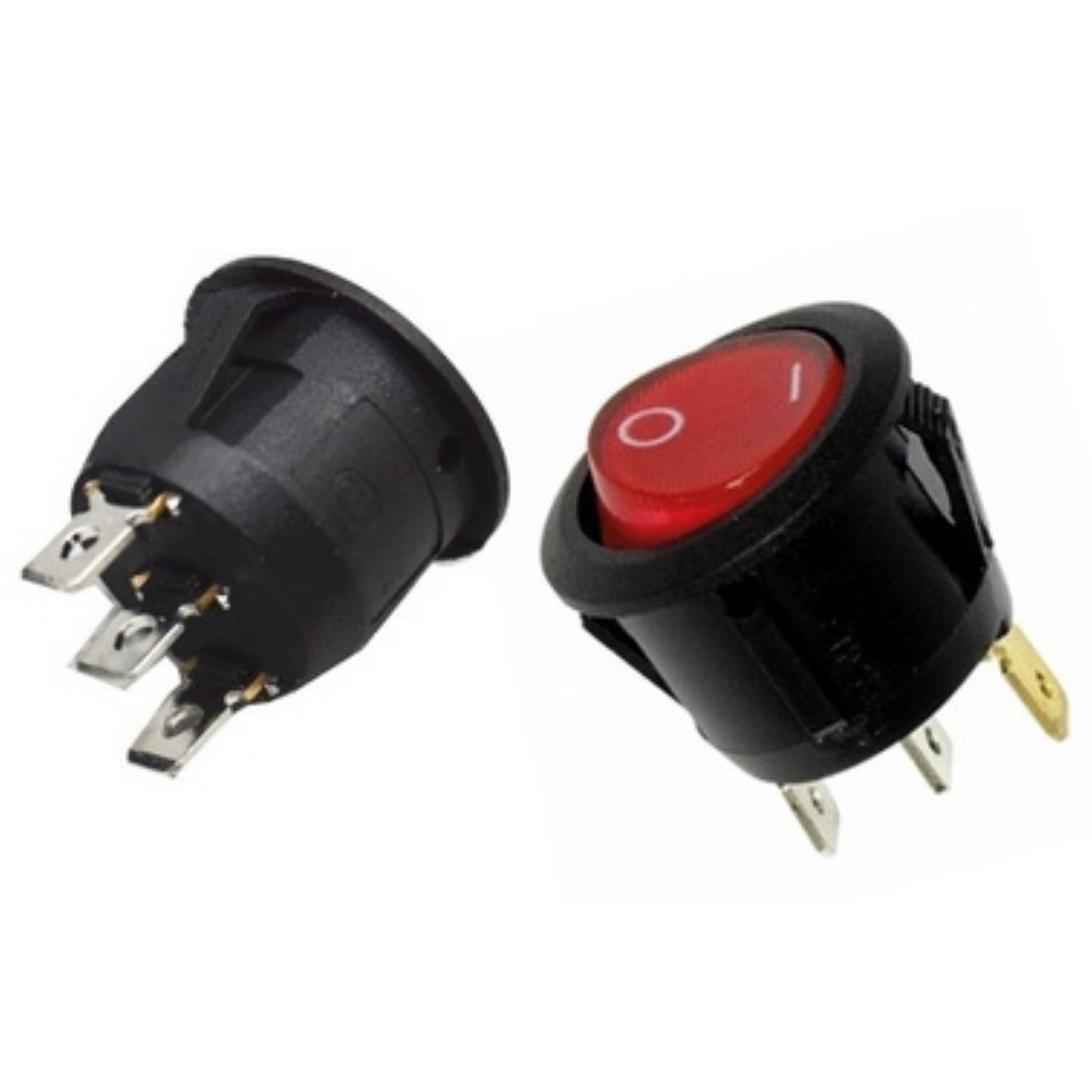 Interruttore tondo luminoso rosso da incasso diametro 20 mm. -3 faston